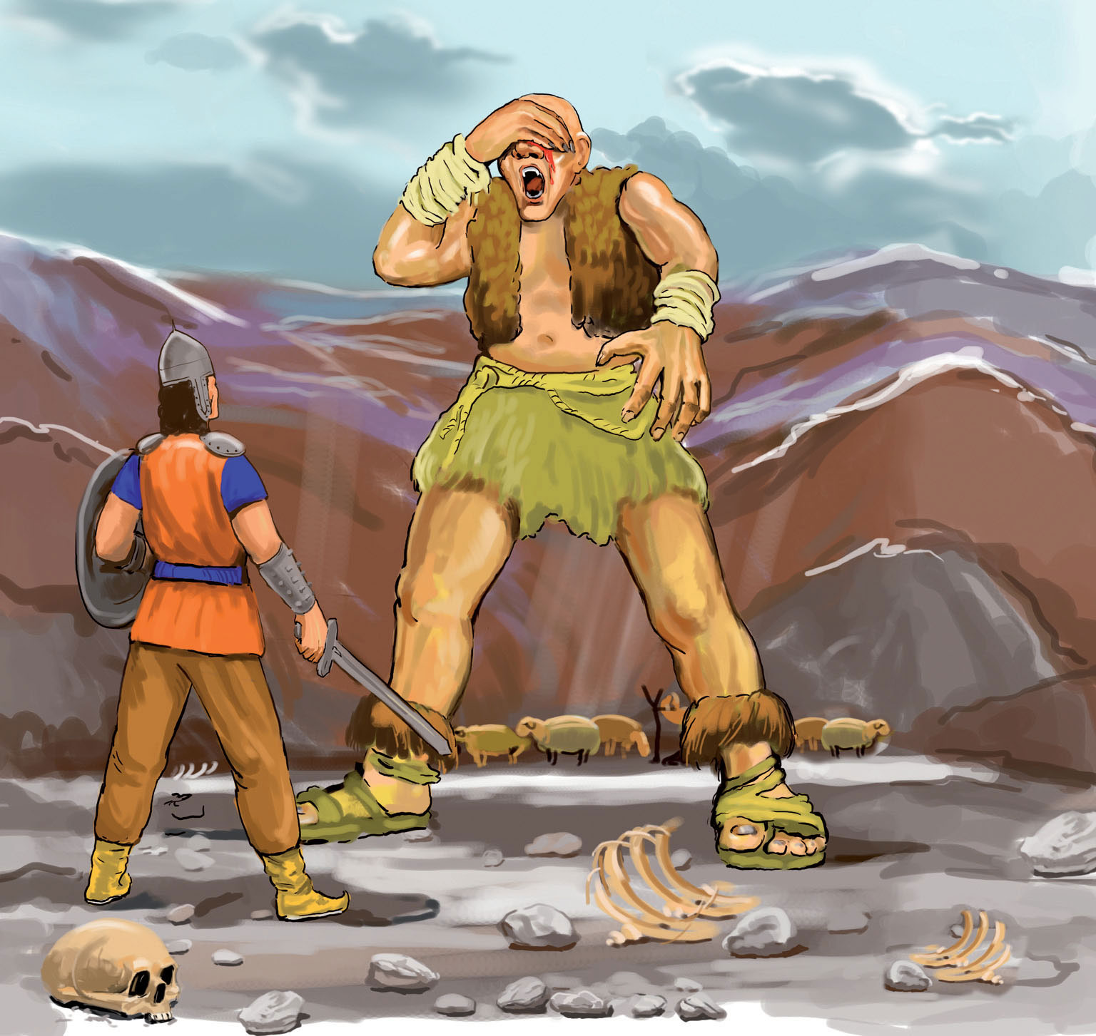 Biri var idi, biri yox idi, keçmiş zamanlarda Nəbi adlı varlı bir kişi vardı. Bu kişinin dövləti, varı, malı, qoyunu başından aşırdı, ancaq övladı yox idi ki, öləndən sonra dövlətinə sahib dursun. Bu kişi həmişə övlad həsrətilə yaşayırdı. Onun ağıllı bir çobanı var idi. Günlərin bir günü Nəbi kişinin çobanı sürünü haylayıb uca bir dağın ətəyinə gətirdi. Birdən duman, çiskin hər tərəfi bürüdü, ətraf gecə kimi qaranlıq oldu. Çoban qoyunların içində dayandı. Bir az sonra duman çəkildi, hava işıqlaşdı, ancaq elə bir tufan qopdu ki, çoban üzüqoylu yerə uzandı, qoyunlar bir yerə toplandılar. Tufan kəsildi. Çoban gördü ki, sürünün içində təzə anadan olmuş bir uşaq var, uşağın təpəsində bircə gözü var. Çoban qoyunların birini sağıb uşağa içizdirdi. Axşam oldu. Çoban uşağı keçəyə büküb evə gətirdi, ağasının arvadına verdi. Ağası və arvadı çox şad oldular. Arvad uşağı öz uşağı kimi saxlamağa başladı.