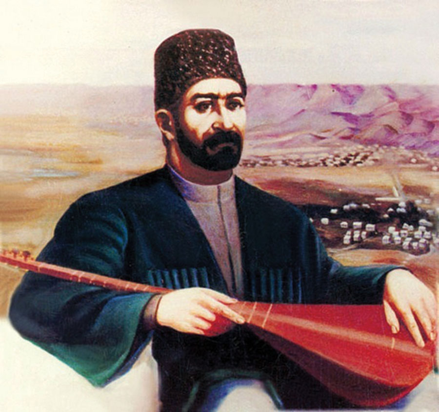 Çərşənbə günündə, çeşmə başında Gözüm bir alagöz xanıma düşdü. Atdı müjgan oxun keçdi sinəmdən, Cadu qəmzələri qanıma düşdü. İşarət eylədim dərdimi bildi, Gördüm həm gözəldi, həm əhli-dildi, Başını buladı, gözündən güldü, Güləndə qadası canıma düşdü.